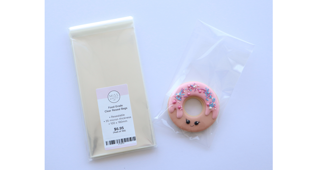 Food Grade Clear Reseal Cookie Bags 35 microns – 100mm x 180mm (pack of 100)
