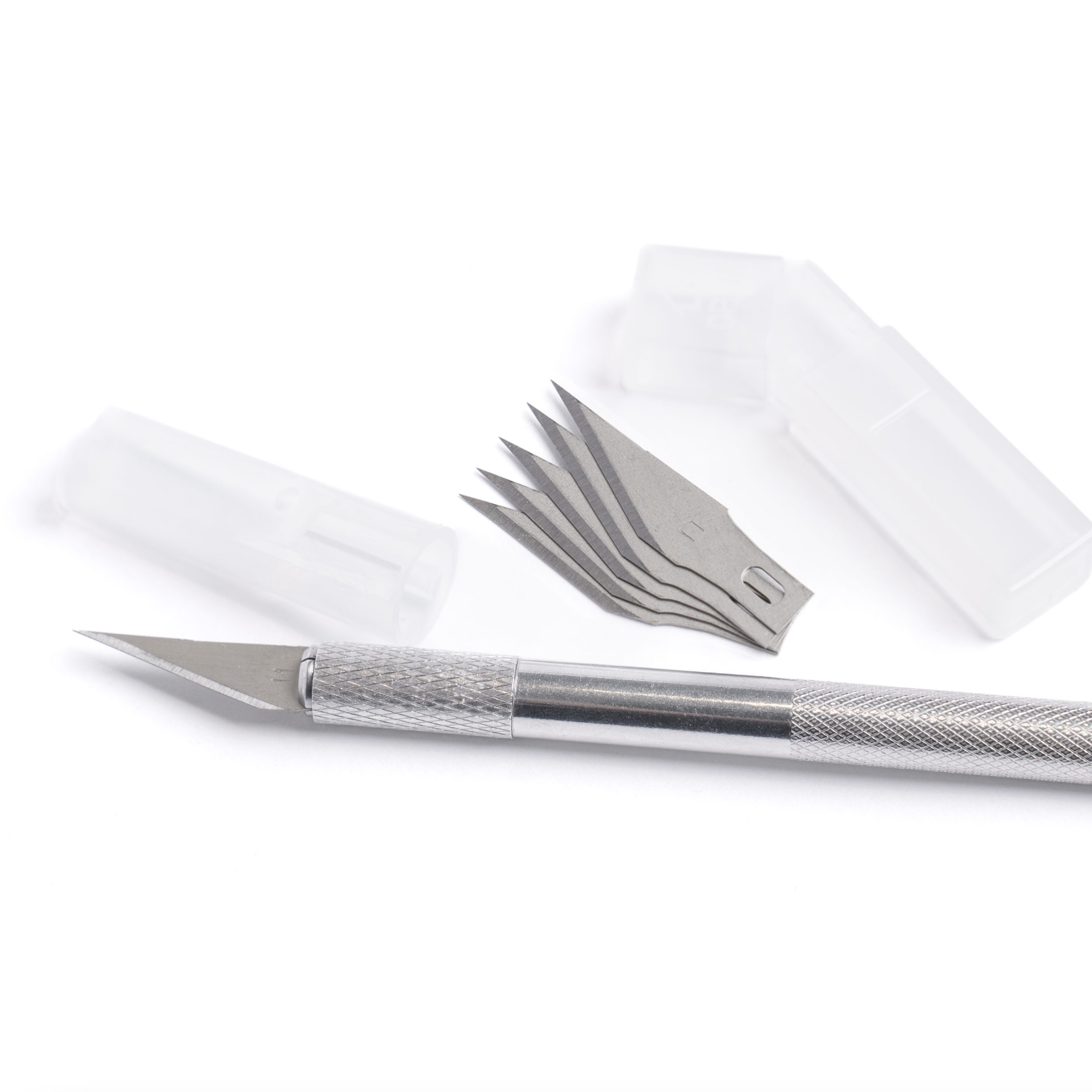 Great quality and durable, the knife is made with an aluminium handle with a non-slip grip to give you greater control control. The 4 jaw chuck design ensures a secure and stable blade attachment, guaranteeing precise cuts every time. A convenient safety blade cover and 5 replacement blades are included!