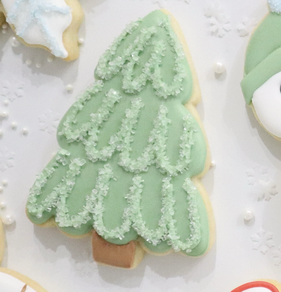 Miss Biscuit Let it Snow Christmas Tree Cookie Cutter used in our 2 hour express Let it Snow Class. Make cute snowman themed cookies with royal icing or fondant for Christmas or woodland themes.